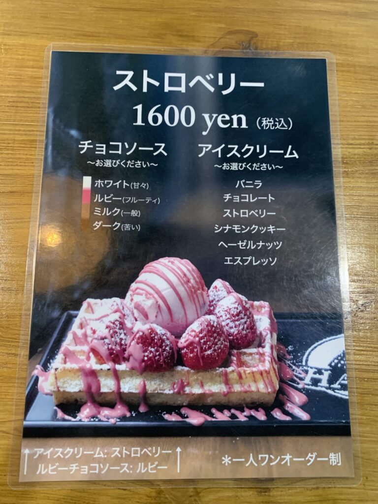 この写真の他にイチゴだけをワッフルの上に盛り盛りにしたメニューもあったよ!