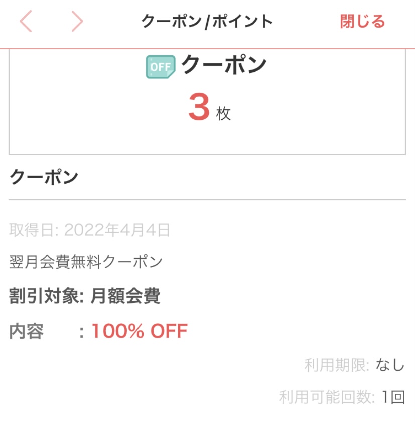 私はこれで次月会費全額無料クーポンをゲットしちゃいました!!